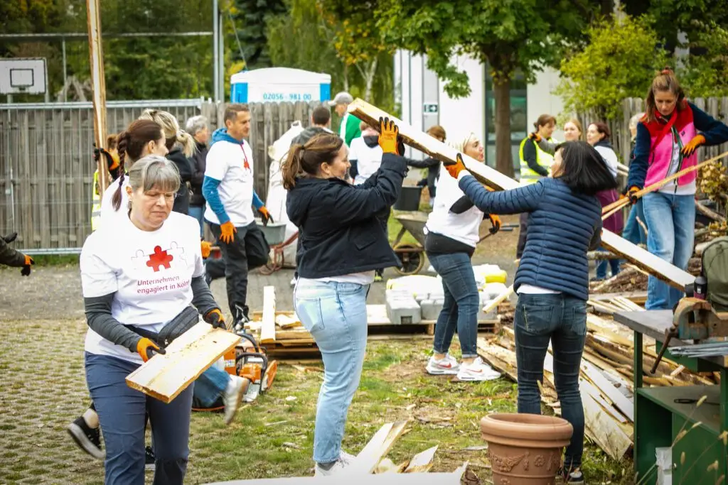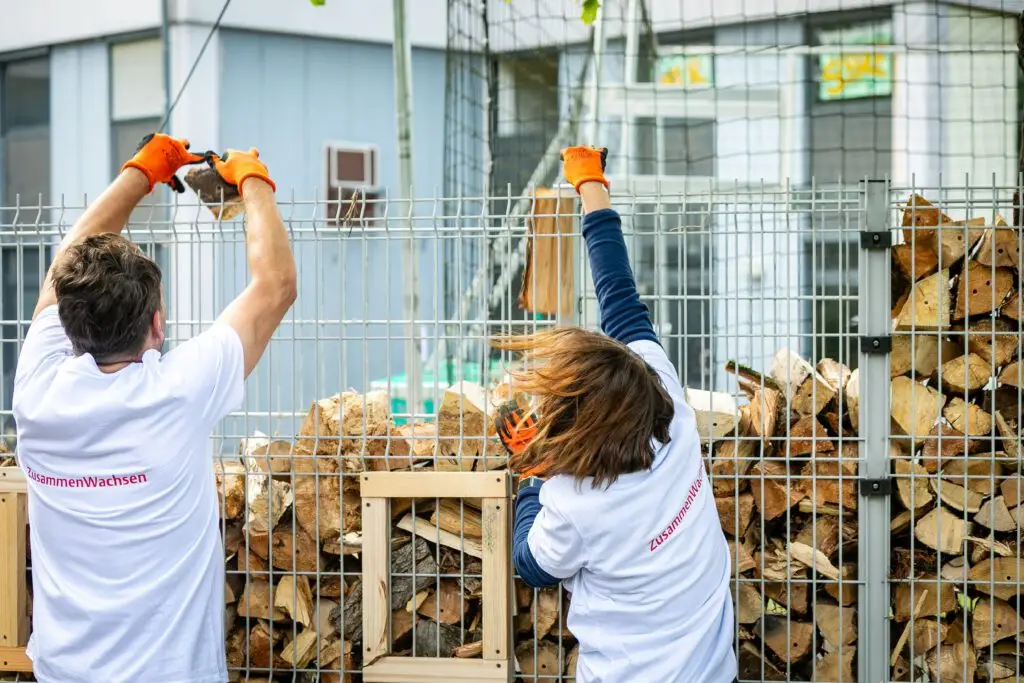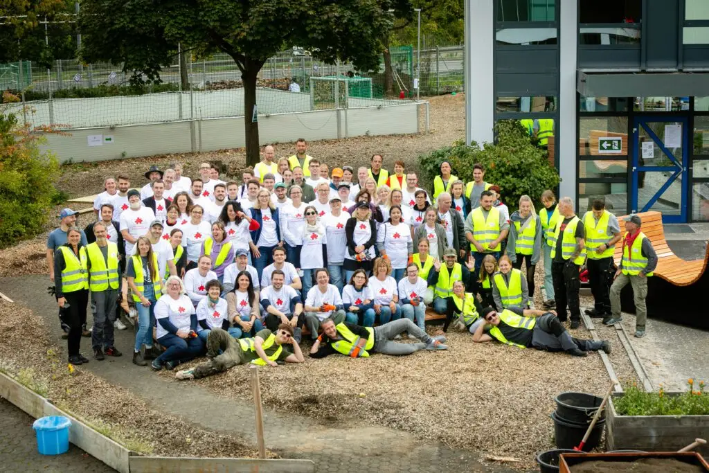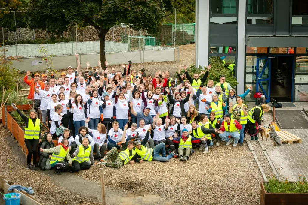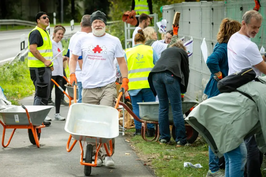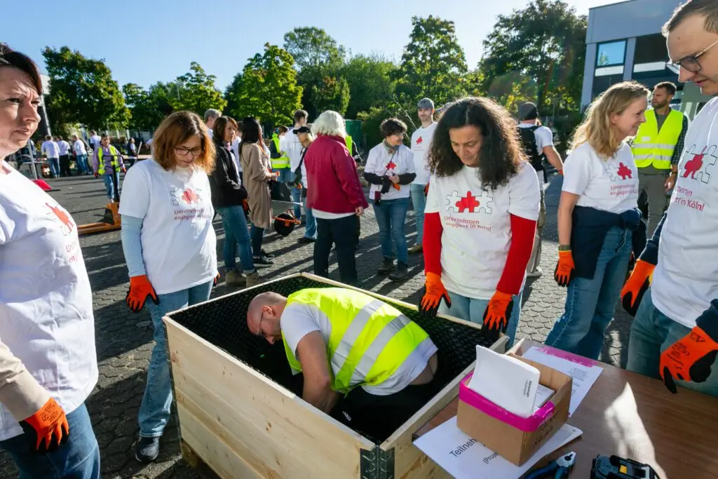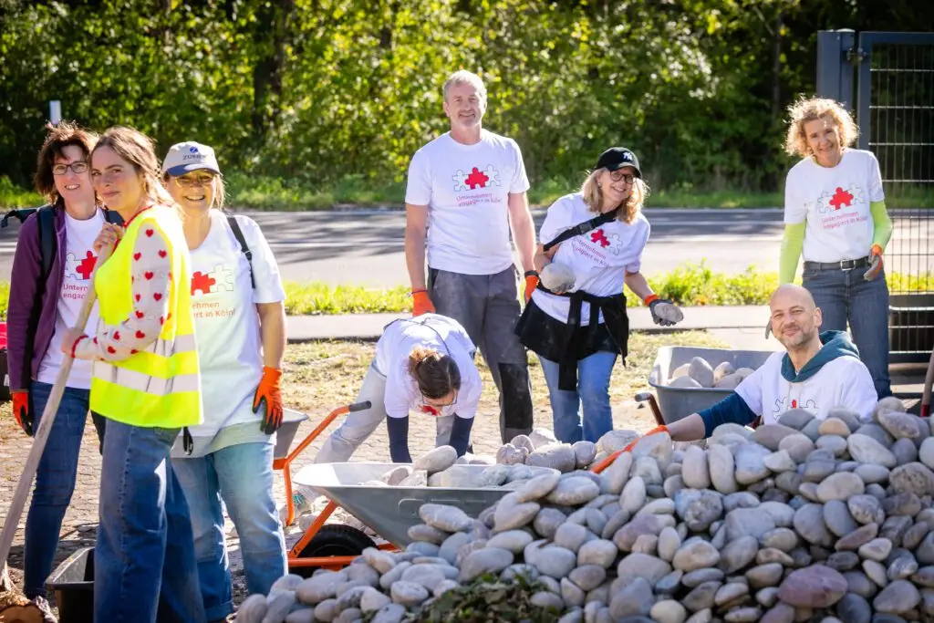 Es summte und brummte fleißig, wie in einem Bienenstock, als sich insgesamt über 150 Ehrenamtler aus Kölner Firmen auf dem Schulgelände der Freien Naturschulen Köln engagierten.