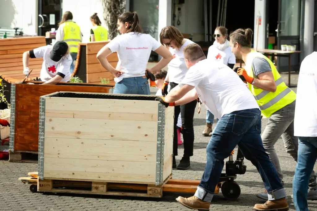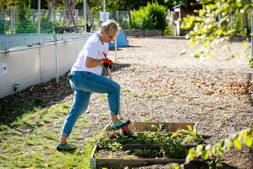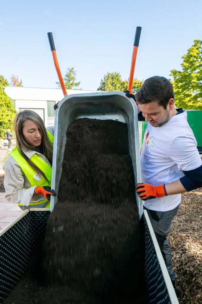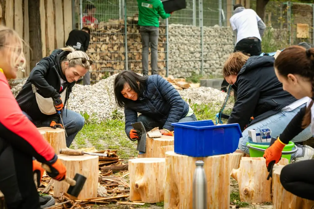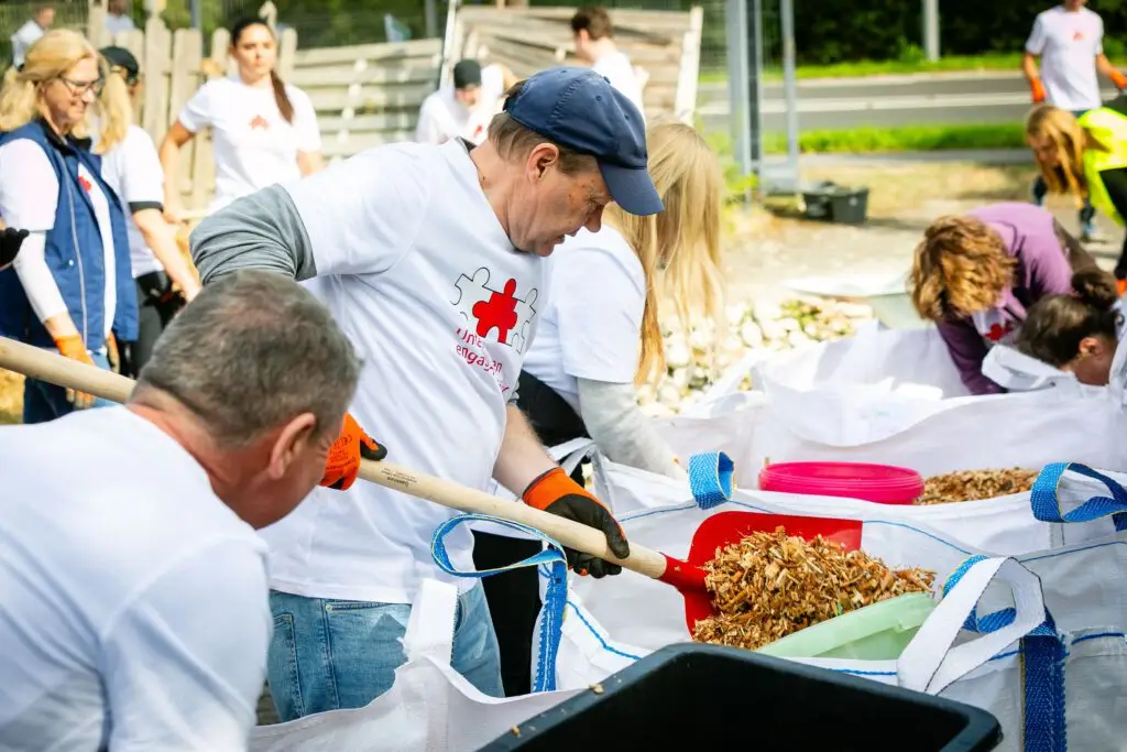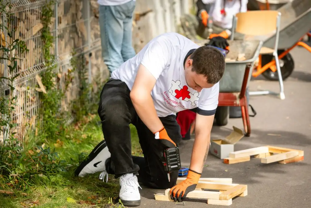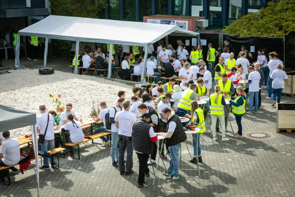 Es summte und brummte fleißig, wie in einem Bienenstock, als sich insgesamt über 150 Ehrenamtler aus Kölner Firmen auf dem Schulgelände der Freien Naturschulen Köln engagierten.